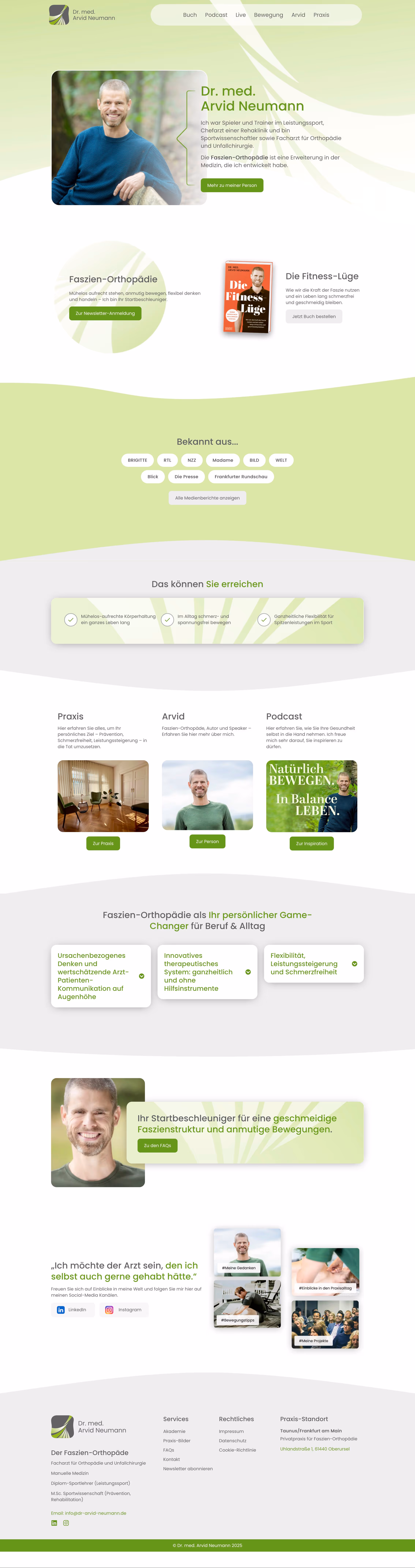 Für den Facharzt für Orthopädie und Gründer der Faszien-Orthopädie Dr. med. Arvid Neumann habe ich eine neue Website konzipiert, gestaltet und umgesetzt. Zudem habe ich Anpassungen an der Corporate Identity umgesetzt.
