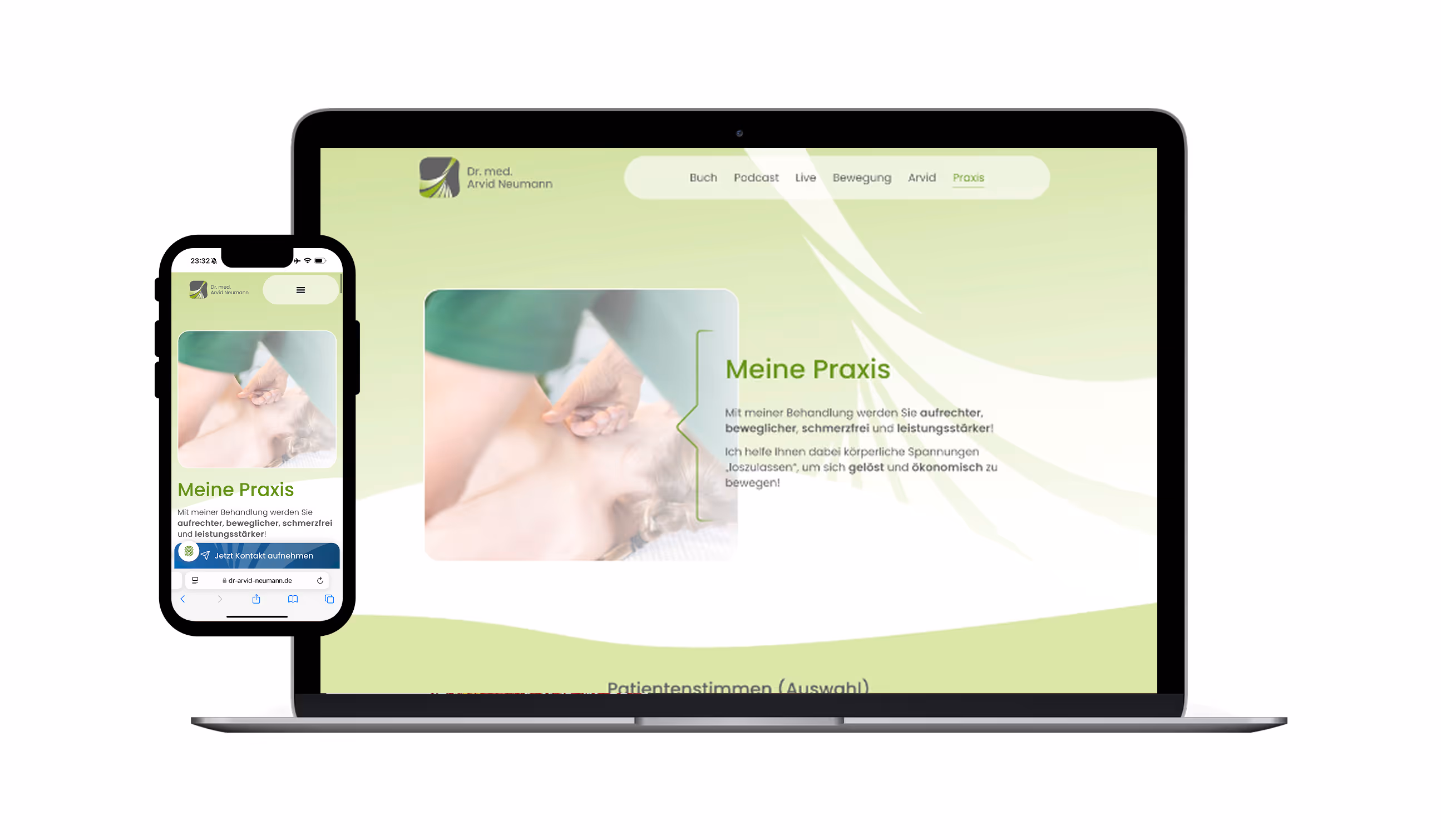 Neue Website im Mobile und Desktop Viewport - Praxis-Seite